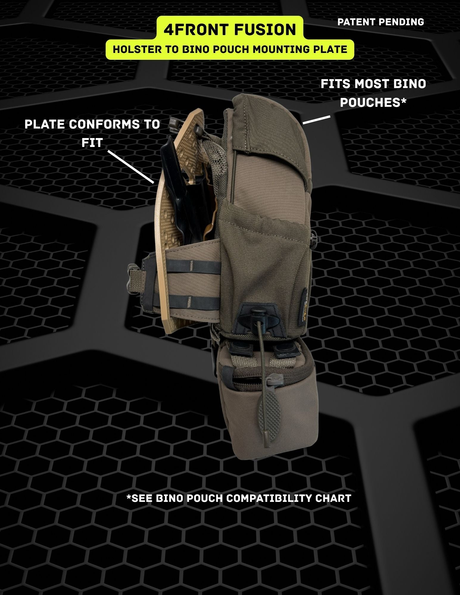 The first of its kind, the Fusion Plate is a universal mounting plate that mounts a holster directly to almost all binocular pouches.